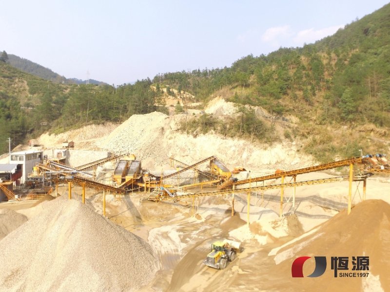 本工艺是针对40mm以下(经颚式破碎机、圆锥破、反击破等粗中碎加工至40mm以下)物料设计,在生产线配置上采用立轴冲击式破碎机(制砂机),此破碎机是上海恒源新型制砂机,具有破碎效率高(具有细碎、粗磨功能)、结构简单、安装维修方便,运行成本低、产品粒型优异(呈立方体,针片状含量极少)的特点。