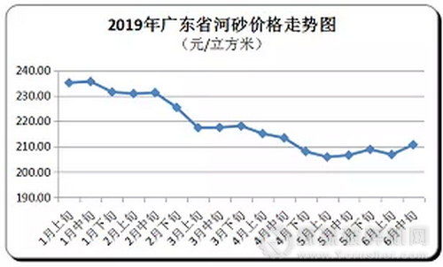 明日起!《广东省河道采砂管理条例》正式实施,条例要求加大非法采砂整治力度,广东地区非法采砂入刑将有“法”可依。据了解,广东省发改委价格监测中心监测数据显示,受砂石市场需求因素影响,2019年6月中旬,广东省砂石价格有所回升,其中碎石购进价格延续上行走势。在当前河道环境严格整治的大背景下,砂石省内供给受限,省外供应受运输距离、物流等诸多不确定因素影响,供需关系有所紧张,6月中旬价格以升为主。随着广东省进入施工旺季,砂石、混凝土需求逐渐上升,预计后期广东省砂石市场价格或将稳中有升运行。