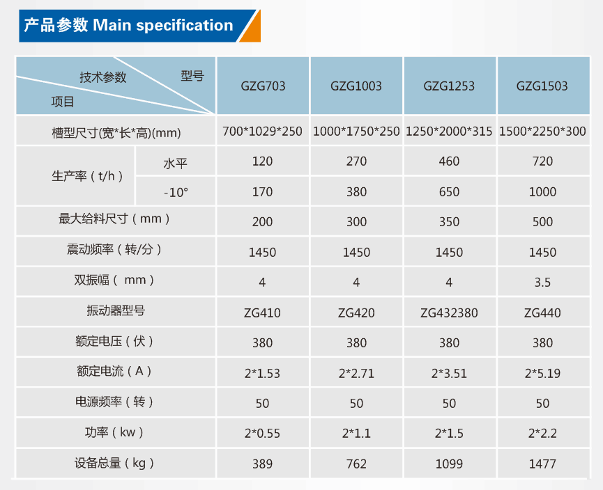 悬挂给料机参数: